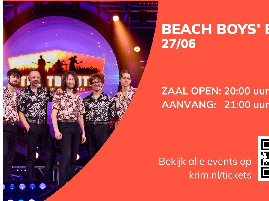 Zaterdag 27 juni 2026 Zin in een zomerse avond vol nostalgie, zon en surfmuziek? Op zaterdag 27 juni 2026 komen de winnaars van The Tribute: Battle of the Bands naar Texel! Beach Boys’ Best brengt een feest van herkenning met de allergrootste hits van The Beach Boys. Laat je meevoeren door de vrolijke vibes van de jaren 60 in een spetterende show in Evenementenhal Texel. Datum: Zaterdag 27 juni 2026 Tijdschema: 20:00: Deuren open, DJ Marco van Sambeek 21:00 – 22:30: Beach Boys' Best (inclusief een pauze) 22:30 – 00:00: Afterparty met DJ Marco van Sambeek Tarief los ticket: € 32,50 Parkeren en garderobe: Gratis
