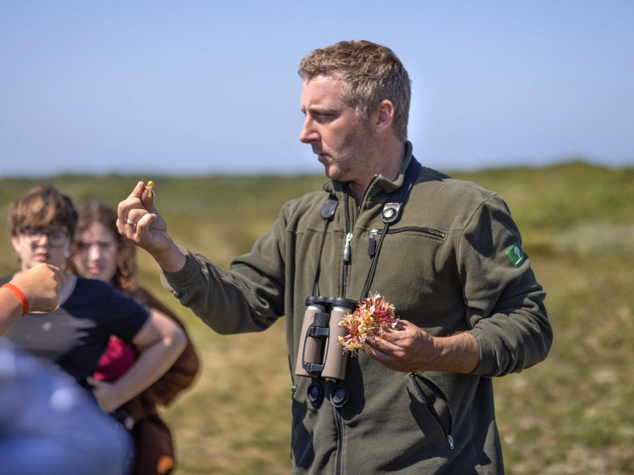 Twee pareltjes van het Nationaal Park Duinen van Texel in één excursie! Ga mee op deze gevarieerde wandeling en maak kennis met twee bijzondere natuurgebieden: het kweldergebied van de Mokbaai en de natte duinvalleien van de Geul. Door de instroom van het zoute water is in de Mokbaai een bijzondere vegetatie ontstaan. Bij laagwater eten hier talloze vogels. De duinvalleien van de Geul bevatten zoet water. Er komen veel bijzondere plantensoorten voor. De wandelexcursie biedt elk jaargetijde fijne verrassingen. In de wintermaanden zijn de (korst)mossen op hun mooist. Het voorjaar is de tijd van broedende lepelaars, zilvermeeuwen en kleine mantelmeeuwen. Zomers zien we een grote variatie aan bloeiende planten die allerlei leven aantrekken. In het najaar is de Mokbaai een belangrijke pleisterplaats voor trekvogels. Zij vinden hier voedsel en rusten uit voor ze weer verder vliegen. Een groot deel van de route is zonder gids niet toegankelijk. Let op: goede hoge laarzen zijn in de wintermaanden nodig. 's Zomers zijn goede wandelschoenen aanbevolen. Voor deze activiteit geldt een minimaal aantal deelnemers. Bij te weinig deelnemers hoor je van te voren of de activiteit kan plaatsvinden. Aanvangstijd: zie de kalender bij het prijsoverzicht. De excursie duurt 2 uur. Kosten: volwassene (vanaf 13 jaar) € 14,-. Kind (8 t/m 12 jaar) € 9,50. Leeftijd: vanaf 8 jaar.
