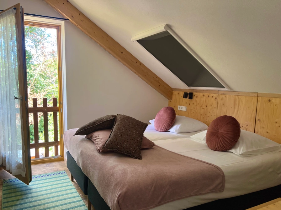 Drie B&B-kamers op de eerste verdieping Iedere B&B-kamer heeft zijn eigen privé-badkamer met een regendouche en toilet Gemeenschappelijke ruimte met koelkast, keukenblokje, quooker en eettafels waar je koffie en thee kunt zetten, rustig kunt ontbijten of spelletjes kunt doen In onze B&B-kamers zijn kinderen toegestaan vanaf 9 jaar.